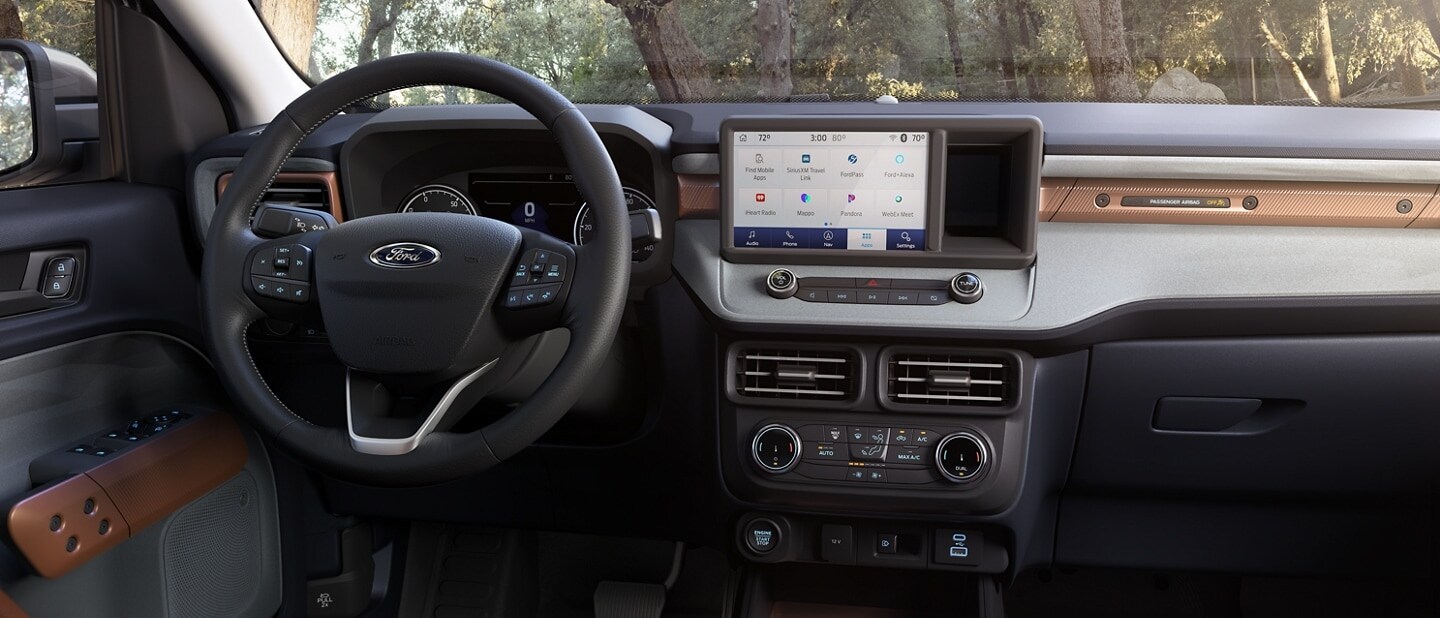 Stay connected and entertained on your journeys with the Maverick's advanced technology features starting with SYNC® 4. The 13.2-inch touchscreen in the new Ford Maverick is bigger than the previous model year, and you have seamless access to your smartphone through wireless Apple CarPlay® and Android Auto™ compatibility. New Ford Maverick trucks near Centereach are even equipped with an 8-inch productivity screen in the instrument cluster. You can purchase a new Ford Maverick with the Bang & Olufsen® Sound System for an immersive audio experience that makes Long Island towing journeys more enjoyable.