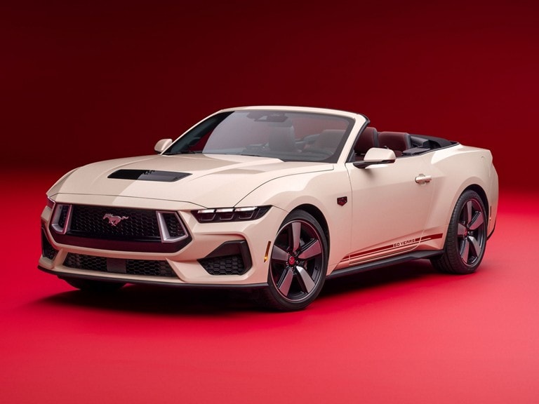 The outside of the vehicle offers thoughtful designs that help your Mustang perform better on the road. Tri-bar LED headlights are available on convertible and coupe models and offer a distinctive and sporty look. Four brake caliper colors are black, red, and Grabber Blue. The overall body of the Mustang offers sculpted lines that maximize handling, speed, and traction.