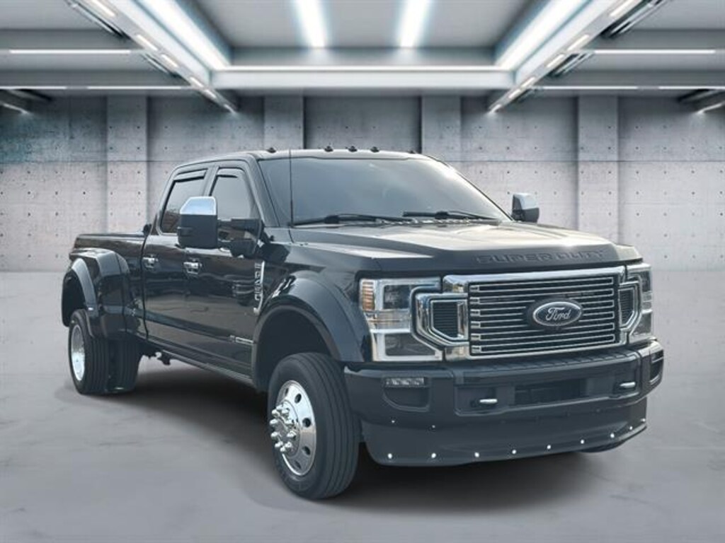 Vehicle Details2021 Ford F-450 Platinum ïÿý?" pristine condition, 0 miles ïÿý?" an unbeatable opportunity in Saint James, NY. This commanding 4WD dually features Dual Rear Wheels and Ford's legendary V8 6.7L Diesel, delivering extraordinary towing capability, torque, and long-haul durability. Finished in premium trim, the Platinum offers luxury appointments and rugged capability in one package. Experience modern connectivity with Apple CarPlay and Hands Free Bluetooth for seamless smartphone integration and safer driving. Safety features include Cross-Traffic Alert and a Back-Up Camera to assist with maneuvering the Ford F-450's powerful presence. A CARFAX Clean Report confirms the vehicle's spotless history, and with low mileage, this truck is essentially brand-new without the wait. Whether you're hauling heavy loads, outfitting a contractor fleet, or seeking a premium diesel performer, this Ford F-450 Platinum meets every need. The diesel V8 and Dual Rear Wheels provide class-leading stability and confidence when towing oversized trailers, while 4WD ensures capability in all weather and terrain. Priced to move, this truck offers the best price in the areaïÿý?"exceptional value for such low mileage and top-tier equipment. Located in Saint James, NY, this 2021 Ford F-450 Platinum is ready for immediate delivery. Act now to secure the strongest combination of luxury, capability, and value in a diesel dually ïÿý?" a rare find with zero miles and an unbeatable price.EquipmentApple CarPlay: Seamless smartphone integration for it - stay connected and entertained on the go! This model has automated speed control that adjusts to maintain a safe following distance, enhancing highway driving convenience. Start this 1 1/2 ton pickup from inside with remote start. Bluetooth technology is built into it, keeping your hands on the steering wheel and your focus on the road. Protect this 2021 Ford F-450 from unwanted accidents with a cutting edge backup camera system. An off-road package is installed on the vehicle so you are ready for your four-wheeling best. It warns of approaching vehicles with Cross-Traffic Alert. with XM/Sirus Satellite Radio you are no longer restricted by poor quality local radio stations while driving the vehicle. Anywhere on the planet, you will have hundreds of digital stations to choose from. The installed navigation system will keep you on the right path. The leather seats in it are a must for buyers looking for comfort, durability, and style.PackagesFX4 Off-Road Package: Transfer Case and Fuel Tank Skid Plates; Hill Descent Control; Off-Road Specifically Tuned Shock Absorbers; Unique FX4 Off-Road Box Decal. Order Code 773A: Limited Slip with 4.30 Axle Ratio; 6.7L 4V OHV Power Stroke V8 Turbo Diesel B20 Engine; 19.5" Forged Polished Aluminum Wheels; TorqShift 10-Speed Automatic Transmission; 225/70Rx19.5G BSW Traction Tires; 14. 000 Lb Payload Package GVWR; Unique Platinum Leather 40/console/40 Seats; B&O System by Bang & Olufsen. Twin Panel Power Moonroof. Tough Bed Spray-In Bedliner. All-Weather Floor Mats. Transfer Case and Fuel Tank Skid Plates. **Equipment listed is based on original vehicle build and subject to change. Please confirm the accuracy of the included equipment by calling the dealer prior to purchase.**