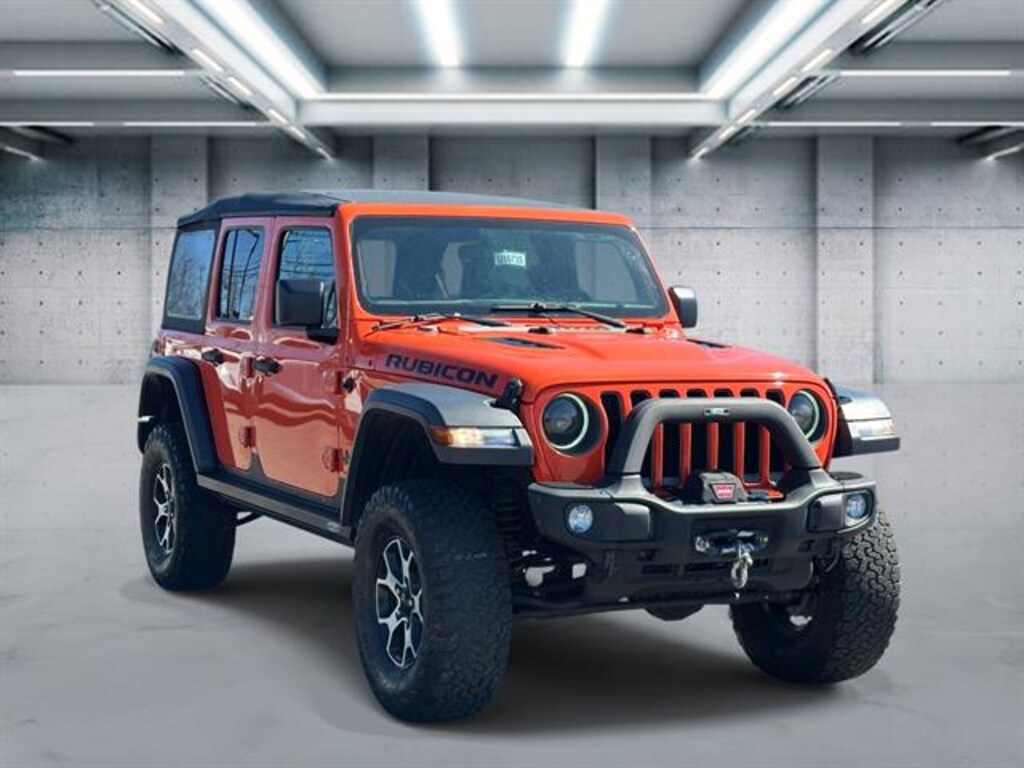 Adventure awaits in this eye-catching Orange 2020 Jeep Wrangler Unlimited Rubicon 4x4! Built for the trail and ready for the city, this rugged SUV features a powerful 2.0L Turbo I4 engine paired with an 8-speed shiftable automatic transmission and legendary part-time 4WD. Off-road tuned suspension, front and rear locking differentials, skid plates, and tow hooks mean you're equipped for any terrain. Stay connected on every journey with Uconnect infotainment, a 7-inch touchscreen, Apple CarPlay, Android Auto, Bluetooth, and SiriusXM Satellite Radio. Enjoy premium comfort with a leather-wrapped steering wheel, customizable digital instrument cluster, automatic climate control, and premium cloth seats. Safety and convenience are top priorities with a rearview camera, push-button start, automatic headlights, advanced stability control, and a full suite of airbags. Removable soft top, aluminum alloy spare, and ample cargo space make this Wrangler as versatile as your adventures. Don't miss out-call or visit today for a test drive and experience why the Rubicon is the gold standard for off-road SUVs!