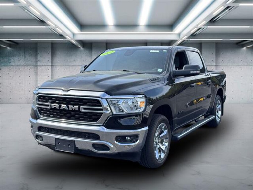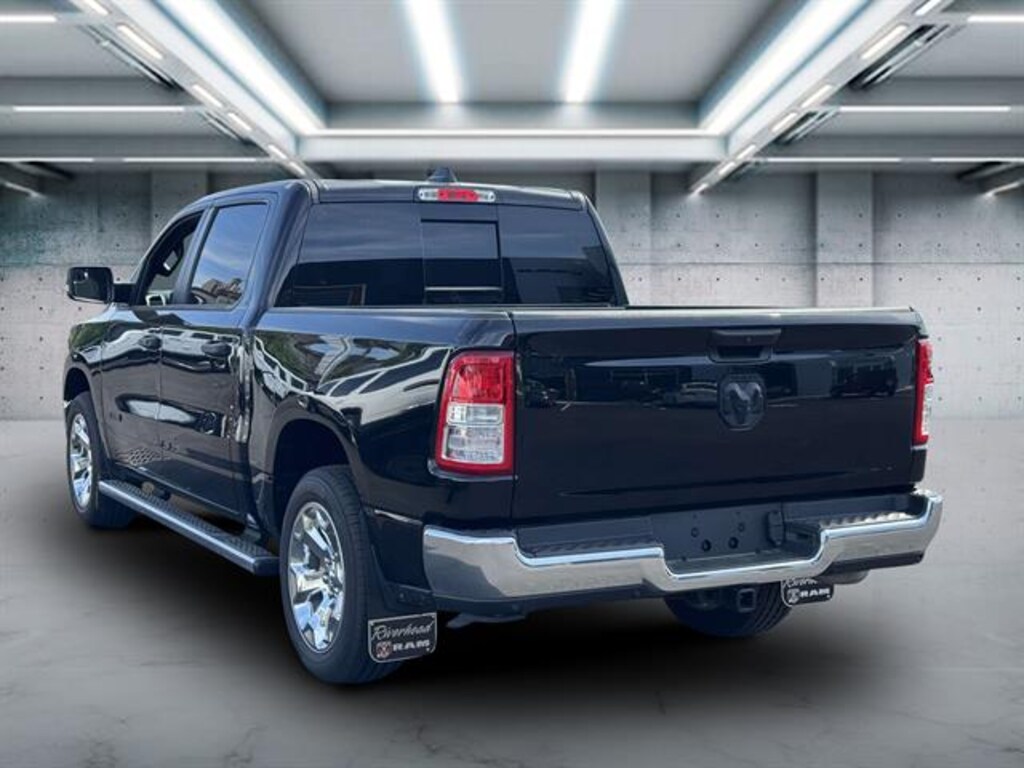 Take on any adventure in this sleek Black 2023 Ram 1500 Big Horn Crew Cab 4x4. Powered by the robust Pentastar eTorque 3.6L V6 paired with an 8-speed automatic transmission, this truck delivers impressive performance and capability. Enjoy premium features like Uconnect infotainment with a 5-inch touchscreen, Bluetooth wireless data link, and voice-operated hands-free phone integration for seamless connectivity. Safety and convenience are top priorities with a rearview camera, power locking tailgate, push-button start, and keyless entry. Comfort is ensured with cloth upholstery, a leather-wrapped steering wheel, and spacious seating for your crew. The exterior is enhanced by aluminum alloy wheels, chrome bumpers, and LED approach lamps. Ready for work or play, it comes equipped with a class III trailer hitch, 7-pin and 4-pin trailer wiring, and tie-down anchors in the bed. Experience the versatility and reliability of the Ram 1500 Big Horn today.
